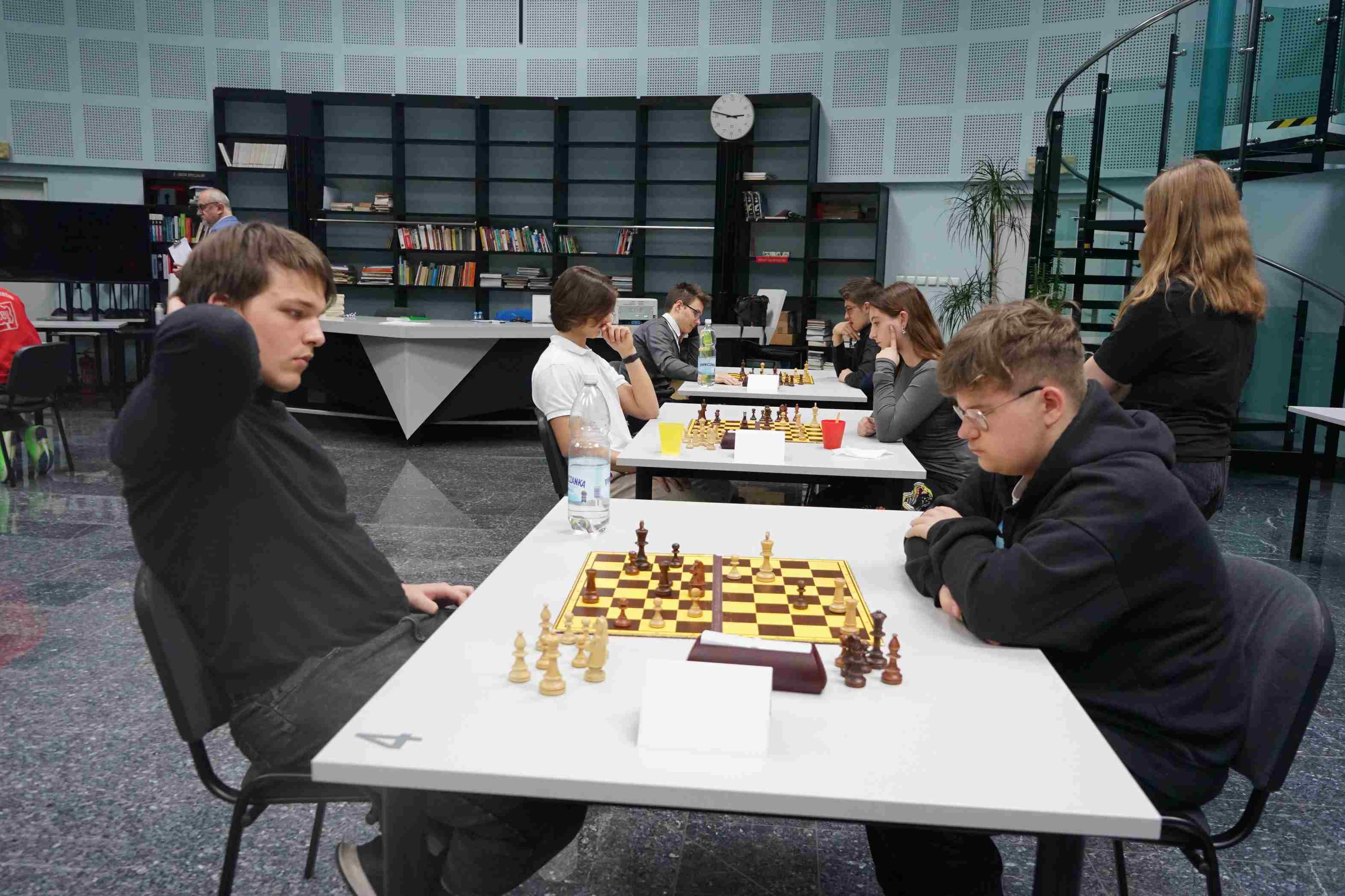 Kolejny, II Małopolski Turniej Szachowy Burs i Internatów im. ks. Mieczysława Kuznowicza, rozegrany w Bibliotece Uniwersytetu Ignatianum w Krakowie, za nami. Miło było patrzeć na zdrową rywalizację wychowanków z dziesięciu placówek województwa małopolskiego (Kraków, Bochnia, Nowy Sącz, Tarnów). Cieszymy się z faktu, iż turniej przyciągnął dużą liczbę uczestników (25 osób), którzy z uśmiechem na twarzy podchodzili do kolejnych szachowych rund. W tej edycji turnieju zwycięzcą został Piotr Banaś, drugi na podium uplasował się Piotr Rainer, a na trzecim miejscu podium stanął Antoni Mazur. Cieszy nas ten fakt tym bardziej, że są to nasi bursanci. Serdecznie Wam gratulujemy. Warto dodać, iż to nie koniec nagrodzonych zawodników. Za swoje osiągnięcia nagrodzeni zostali również kolejni trzej uczestnicy zawodów: Daniel Krupa (Internat Zespołu Szkół Łączności w Krakowie), Kacper Brzychczy (Bursa Międzyszkolna w Tarnowie), Wiktor Gremyakin (Bursa Szkolnictwa Ponadpodstawowego nr 2 w Krakowie). Pozostali uczestnicy otrzymali pamiątkowe dyplomy i słodkie upominki. Gratulujemy wszystkim uczestnikom II Małopolskiego Turnieju Szachowego Burs i Internatów im. ks. Mieczysława Kuznowicza i mamy nadzieję, że spotkamy się w przyszłym roku w jeszcze większej grupie i w równie dobrych nastrojach. Dokładną klasyfikację uczestników oraz placówek biorących udział w turnieju można znaleźć na stronie chessarbiter